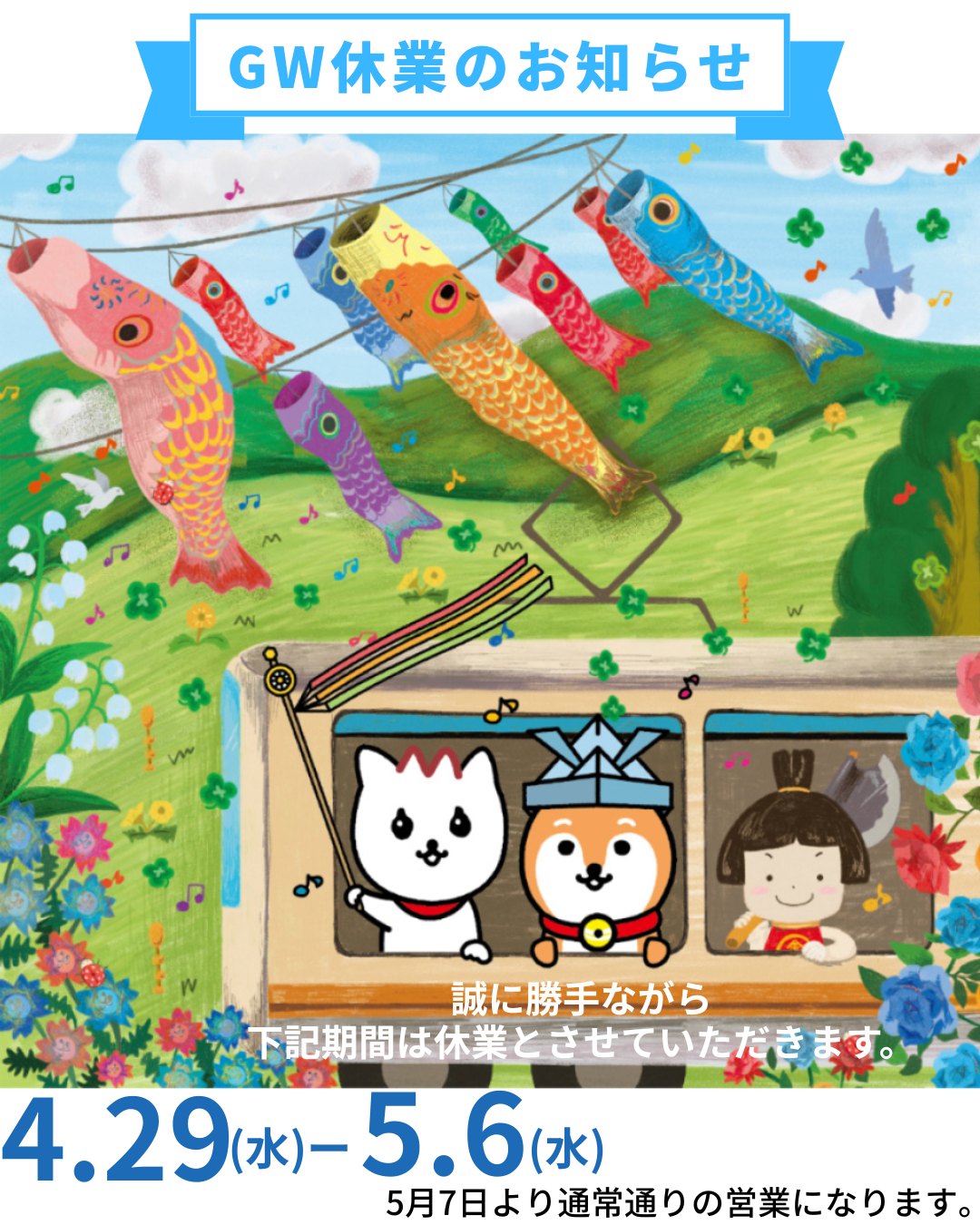 誠に勝手ながら、下記の期間をゴールデンウィーク休業とさせていただきます。