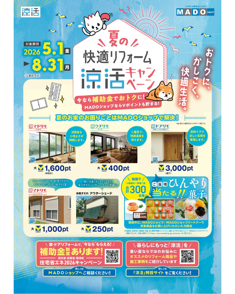 【対象】MADOショップでVポイント対象商品(例えば..かんたんマドリモ、マドリモシャッター、かんたんウチリモ、かんたんドアリモ、アウターシェード)のリフォームをされたお客様です。
